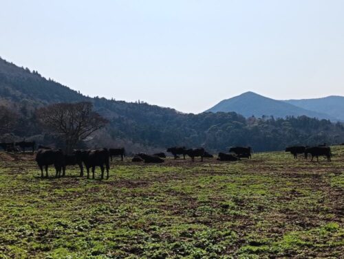 学生寮のすぐ近くで放牧されていた牛たち。