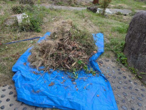 刈り取った草を